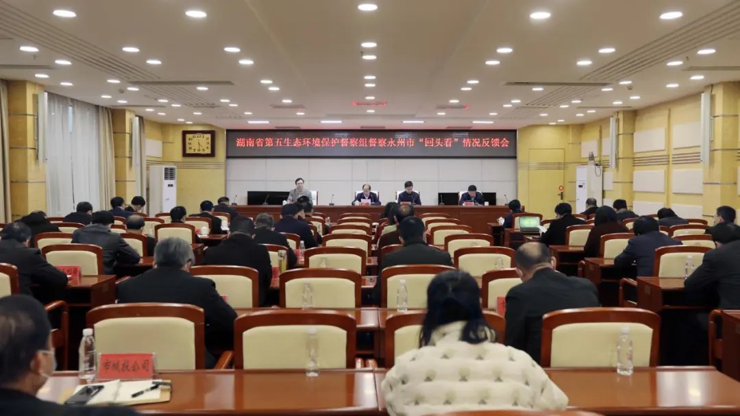 為深入貫徹落實習近平生態(tài)文明思想,根據《中央生態(tài)環(huán)境保護督察工作規(guī)定》和《湖南省環(huán)境保護督察方案(試行)》有關要求,按照省委、省政府統(tǒng)一部署,省第五生態(tài)環(huán)境保護督察組(以下簡稱督察組)于2020年10月22日至11月6日對永州市2018年省級環(huán)境保護例行督察整改情況開展了“回頭看”,同時針對該市自然保護地生態(tài)環(huán)境保護工作情況統(tǒng)籌安排了專項督察。經省委、省政府批準,督察組于3月6日向永州市反饋“回頭看”及專項督察情況。督察組組長楊金鳶宣讀《永州市省生態(tài)環(huán)境保護督察“回頭看”及自然保護地生態(tài)環(huán)境保護專項督察報告》(以下簡稱《督察報告》),永州市委書記、市人大常委會主任嚴華作表態(tài)發(fā)言,永州市委常委、常務副市長楊昶主持反饋會,督察組副組長劉翔出席。