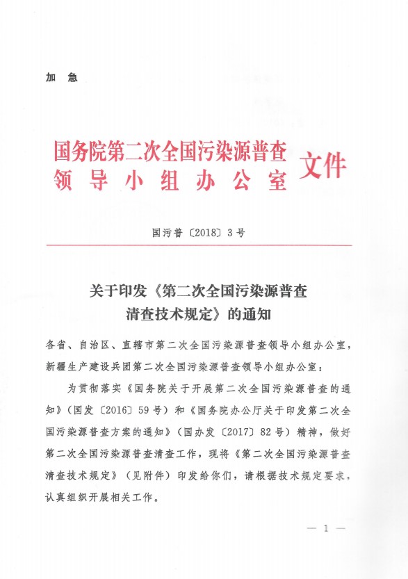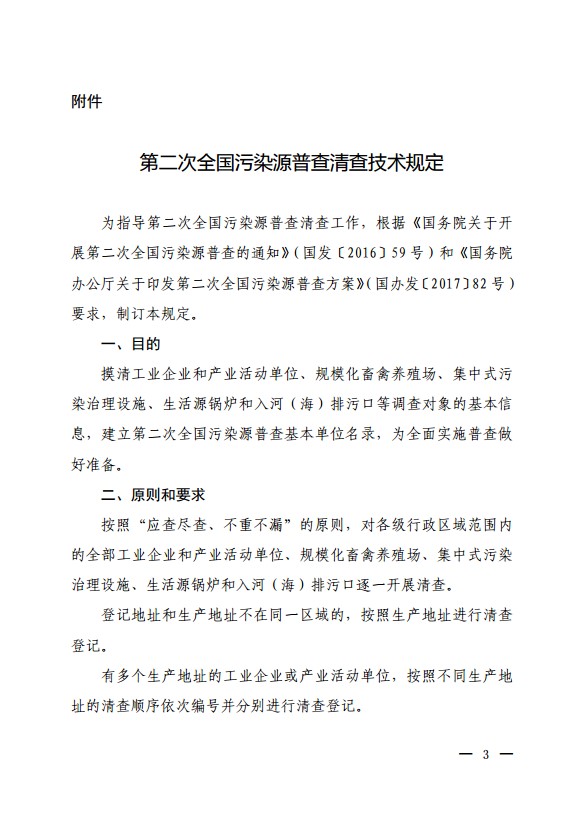 國普辦【2018】3號文件:關于印發《全國第二次污染源普查清查技術規定》的通知